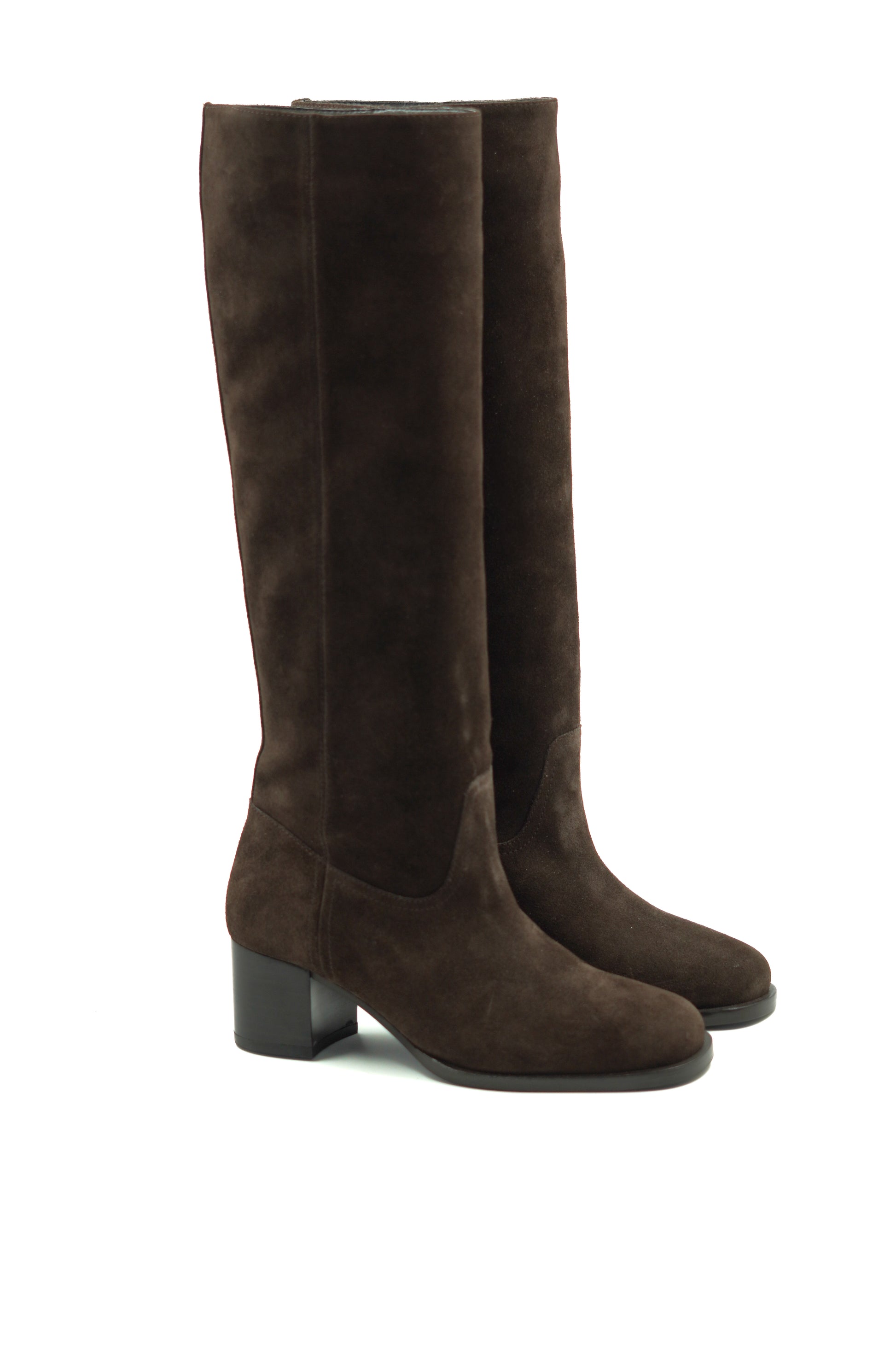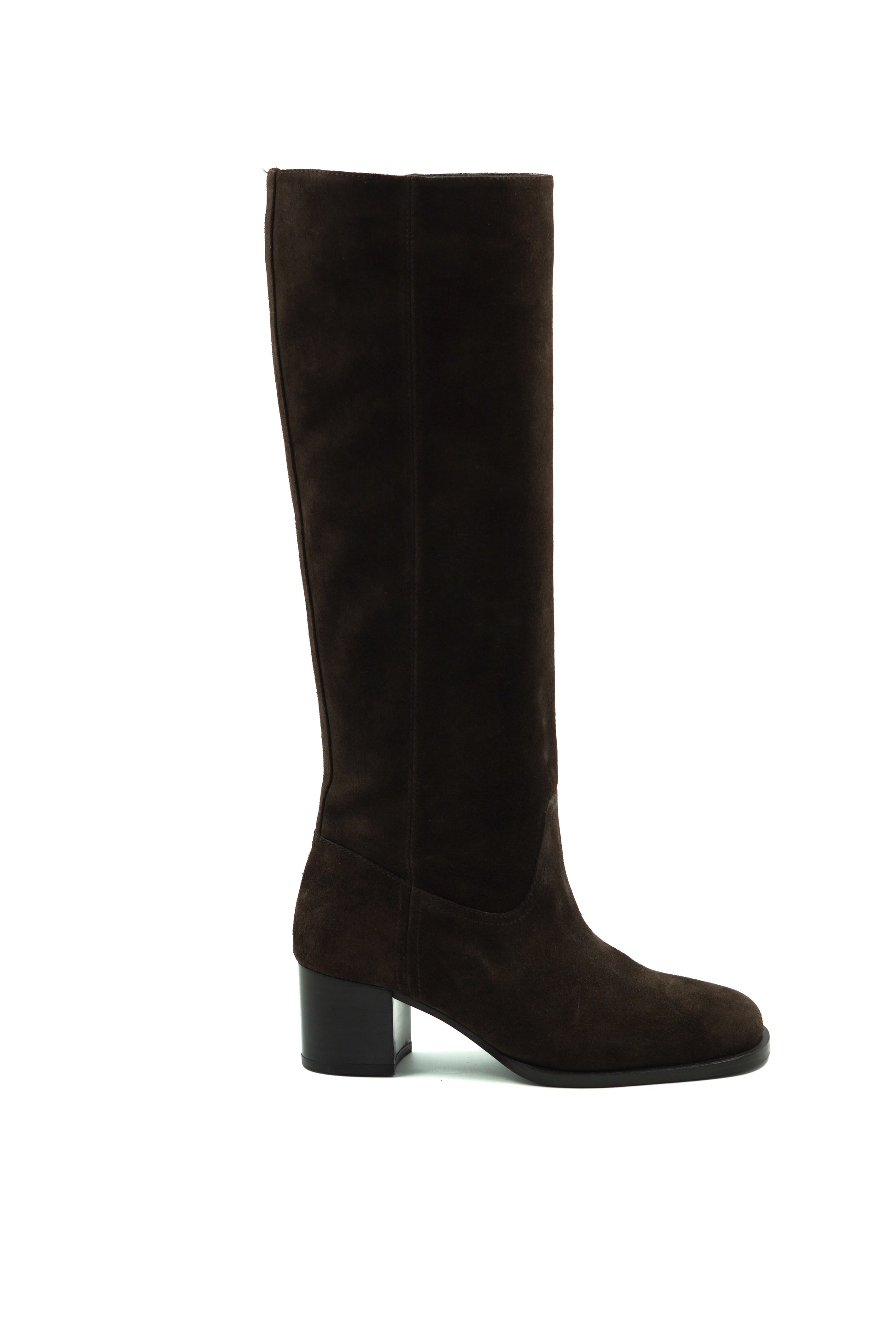 Botte haute élégante en cuir suédé marron, au design épuré et intemporel, idéale pour sublimer toutes vos tenues d’hiver. Son talon stable assure confort et allure au quotidien, alliant sophistication, qualité et modernité.